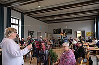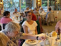 47 Frauen haben daran teilgenommen und vom späten Nachmittag hinein bis in den frühen Abend fröhliche Stunden erlebt. Es gab nicht nur ein gutes Essen, sondern auch musikalische Unterhaltung, gestaltet von dem Hagener Künstler Cud Kegel. Durch die Musik ließen sich einige der Damen sogar zu einem Tänzchen verleiten. Unser Facit: Es muss nicht immer eine Bus-Reise nach "Irgendwo" sein, in unserer Hagener Heimat ist es auch sehr schön.