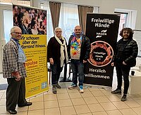 Auf dem Foto sind abgebildet von rechts: Ahmad Masr i, ein ehrenamtlicher Mitarbeiter und Ahmad Alali , Gründer und Vorsizender des Vereins Freiwillige Hände e.V., Monika Dittmar und Barbara Schippang vom Bezirksverband Hagen